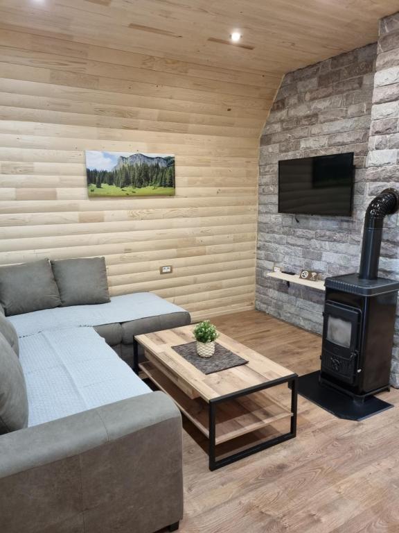 This holiday home features a fireplace. This holiday home consists of 1 living room, 2 separate bedrooms and 1 bathroom with a walk-in shower and free toiletries. Guests will find a stovetop, a refrigerator and kitchenware in the kitchen. The holiday home also provides guests with a barbecue. Featuring a terrace with garden views, this holiday home also provides a tea and coffee maker and a flat-screen TV with streaming services. The unit offers 4 beds.